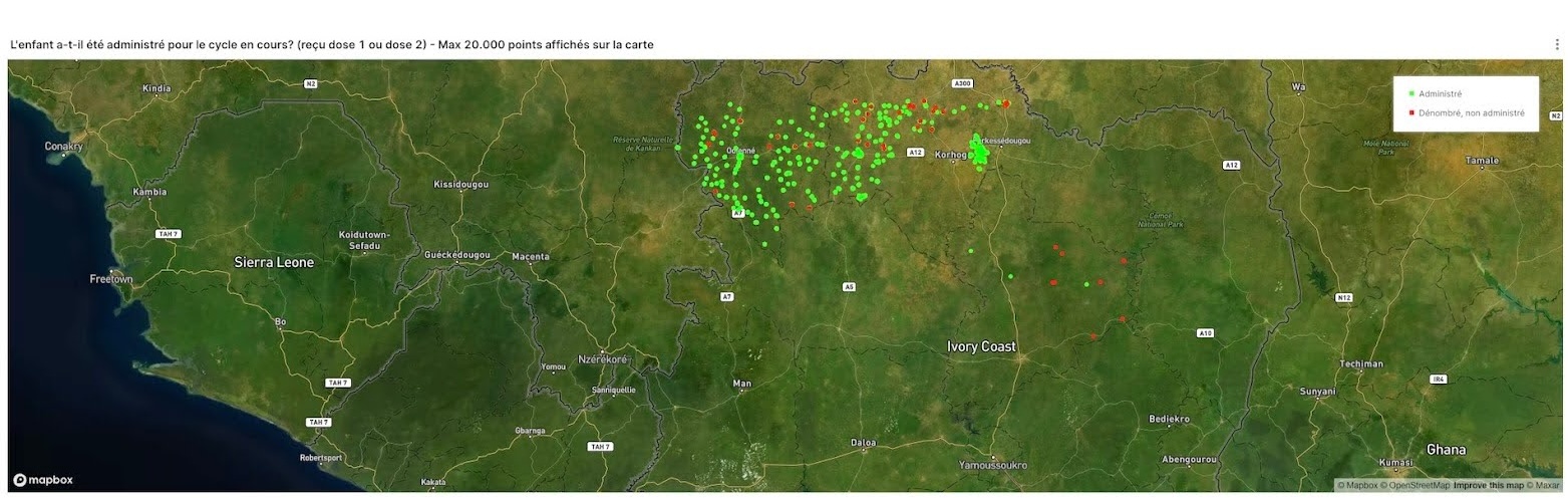 Dashboards included geolocation modules, daily summaries and key logistics indicators such as coverage and consumption rates by age group. With 24h/24 server availability and automatic data updates, NMCP teams and partners benefited from immediate visibility on campaign progress, significantly strengthening operational responsiveness.